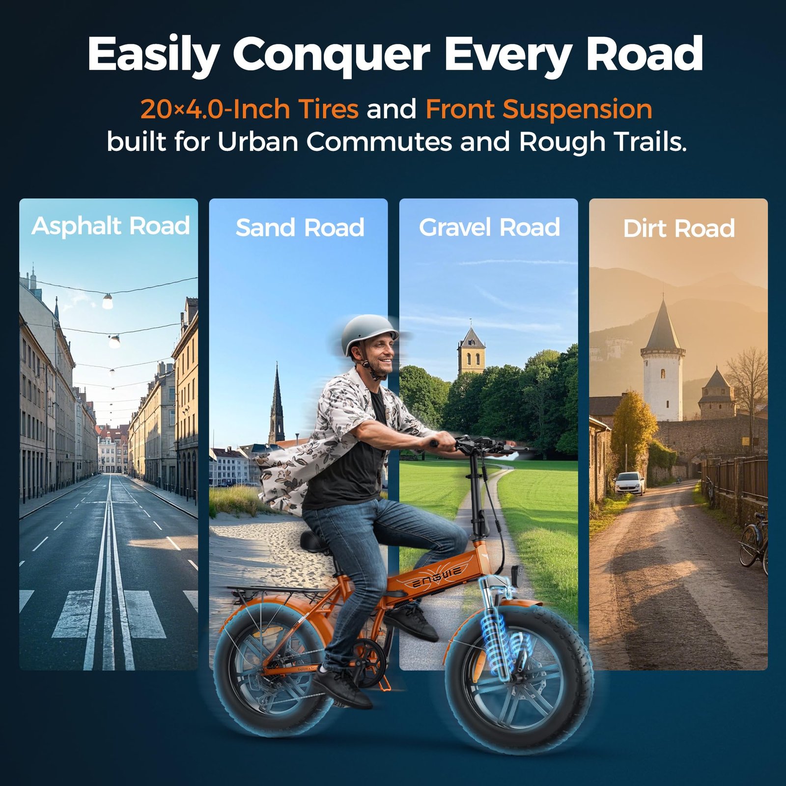 - Conducción suave y cómoda: la e-bike ENGWE EP-2 BOOST está equipada con un sensor de par para una conducción suave y silenciosa. El cuadro de aluminio 6061, la horquilla de suspensión delantera, el sillín ajustable y el manillar garantizan una conducción suave y cómoda a cualquier altura, mientras que las ruedas de aluminio de 20 pulgadas se adaptan a todos los terrenos para ofrecer estabilidad y versatilidad.