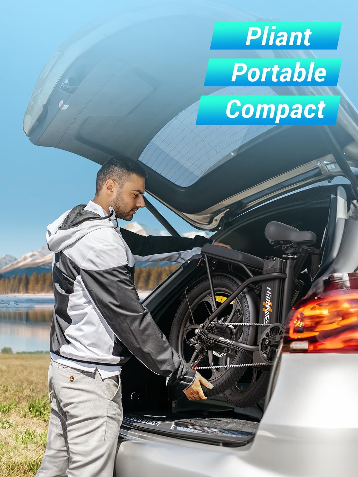 HillMiles MilePort 1 – Bicicleta Eléctrica Plegable Fatbike 20 Pulgadas con Motor 250W, 100km Autonomía y Doble Suspensión